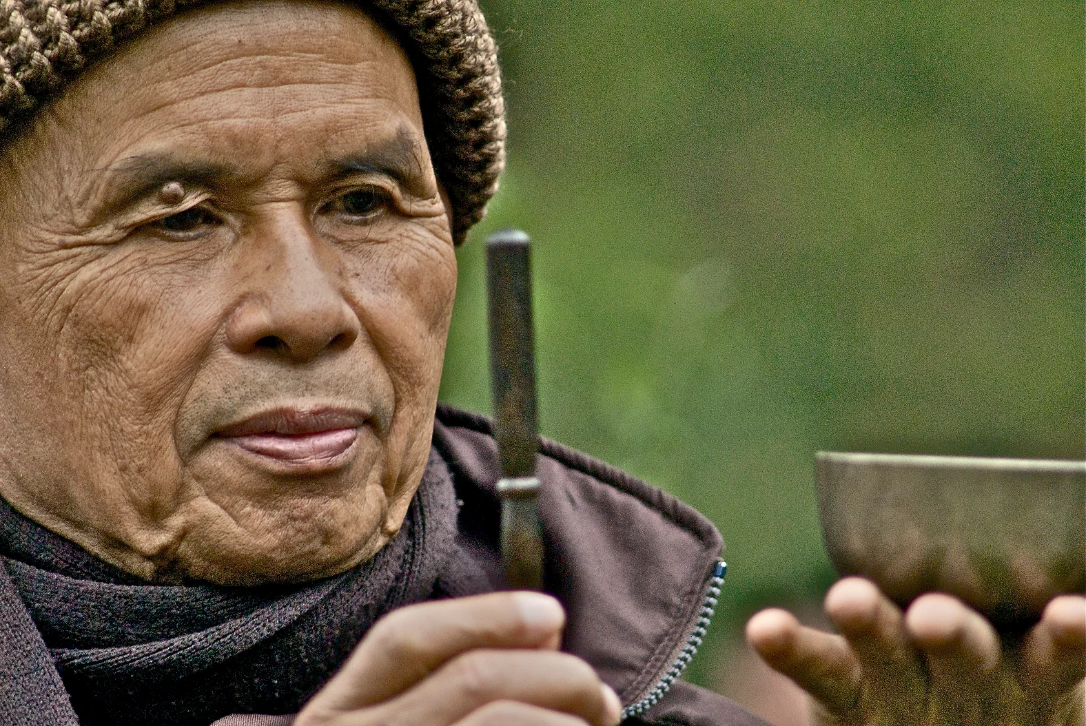 Er wurde 1926 in Vietnam geboren und trat mit 16 Jahren ins Kloster ein. Während des Vietnamkrieges wurde er Mitbegründer der Bewegung “Engagierter Buddhismus“, 1964 gründetet er in Saigon die “Schule für Jugend und Sozialarbeit”. Diese Organisation setzte sich dafür ein, bombardierte Dörfer wieder aufzubauen, Schulen und medizinische Zentren zu schaffen und landwirtschaftliche Kooperativen zu organisieren.